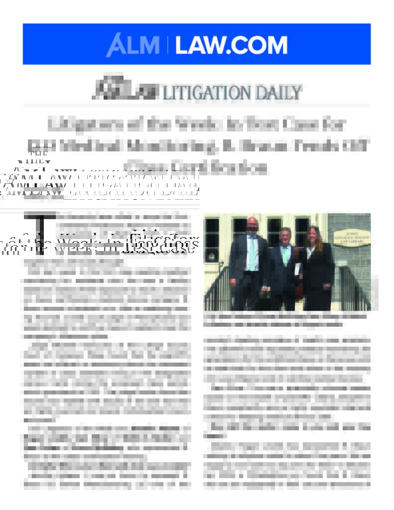 Welsh & Recker is proud to share that Partner Sam Silver has been named Litigator of the Week by Law.com alongside co-counsel Jennifer Adams of Hogan Lovells and Sam Cohen of Gross McGinley for their terrific work representing B. Braun US Device Manufacturing LLC in their class certification hearing last month. Congratulations to the entire team on their success, including Bruce Merenstein, Richard Walk, Abigail Burton, and Ciara McParland.